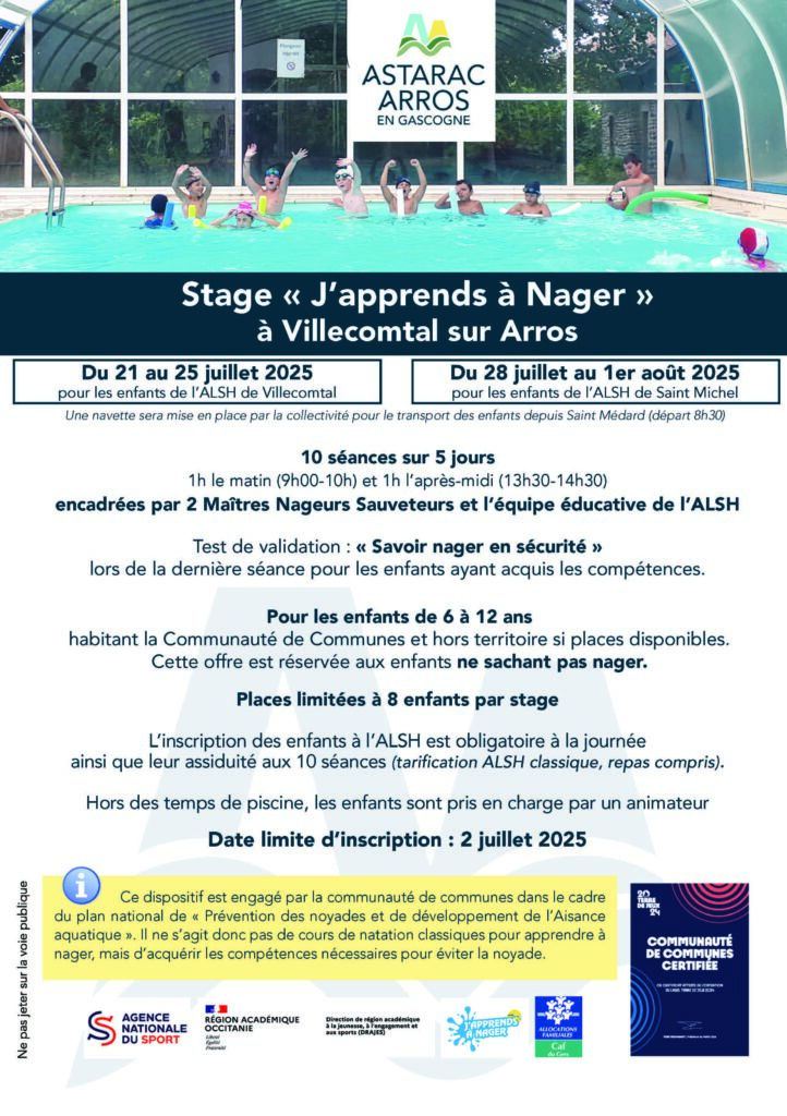 Stage « J’apprends à Nager » à Villecomtal sur Arros.