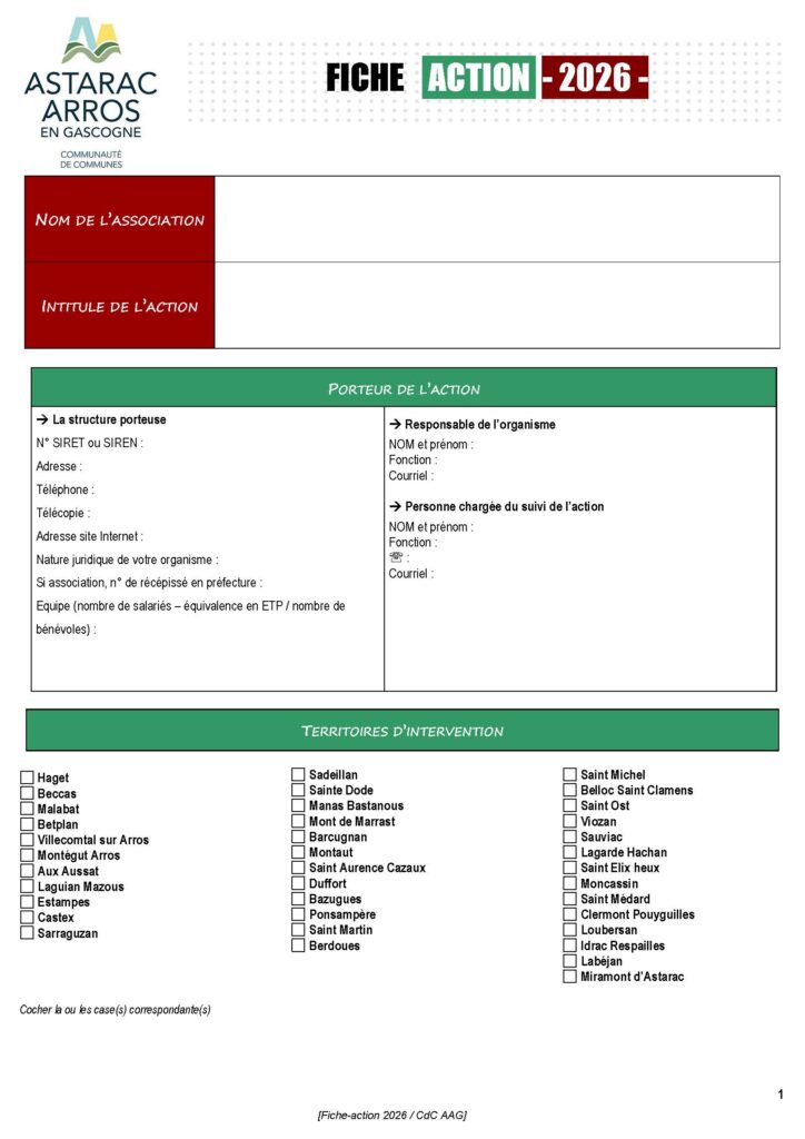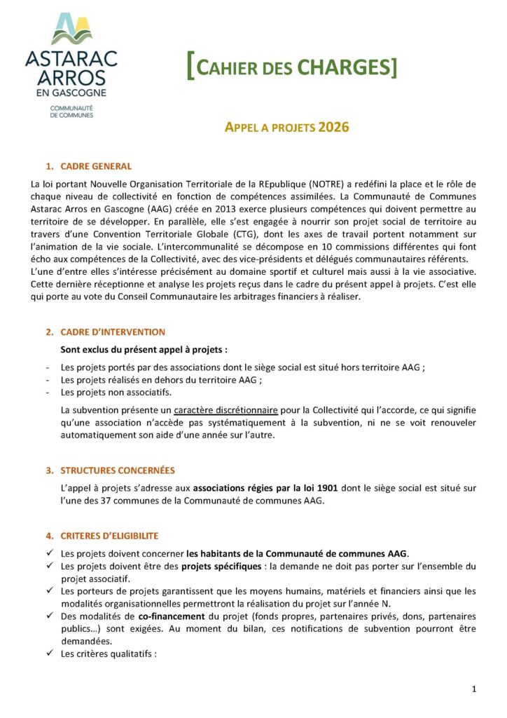 La Communauté de communes Astarac Arros en Gascogne lance son appel à projets 2026 de soutien aux associations du territoire !