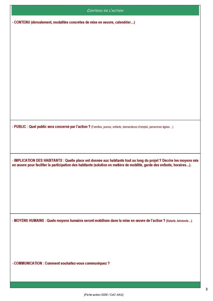 Retrouvez les critères d’éligibilité dans le cahier des charges, ainsi que la fiche-action à compléter ci dessous :