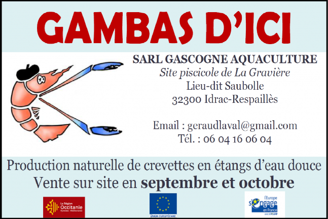 La saison des gambas d’eau douce touche à sa fin avec une dernière vente sur site samedi 19 octobre matin chez gambas d’ici à Idrac-Respaillès (32300).