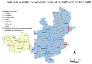 Le territoire d’AAG, et plus largement le Sud-Ouest de la Région Occitanie, sont répartis sur deux SAGE distincts. Le SAGE Adour Amont pour la partie Ouest du territoire (site internet), et le SAGE Neste et Rivières de Gascogne pour la partie Est ; ce dernier est en cours d’élaboration (site internet).